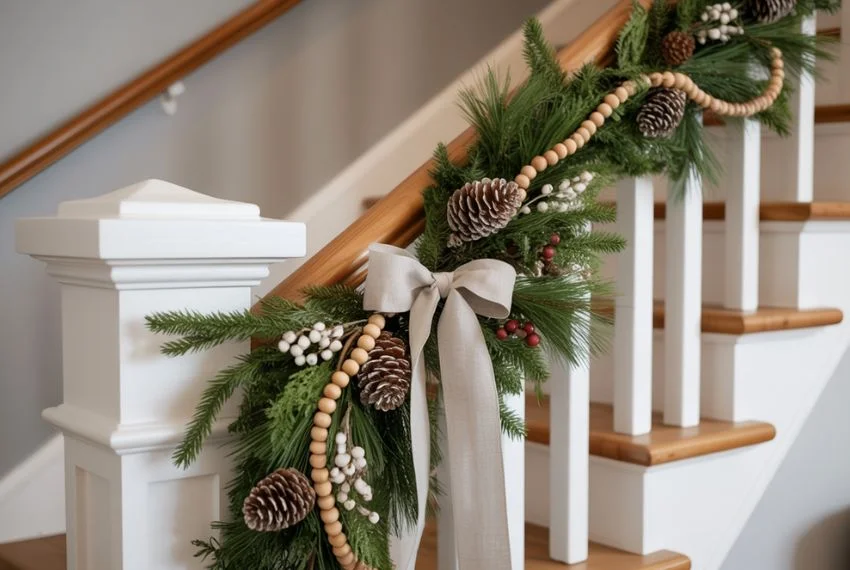 To start, select a neutral garland—eucalyptus, cedar, or frosted pine works beautifully. Avoid overly bulky greenery. Instead, choose slim garlands that drape naturally along your railing. Modern holiday décor thrives on soft textures and gentle curves, creating a calm and elegant mood.