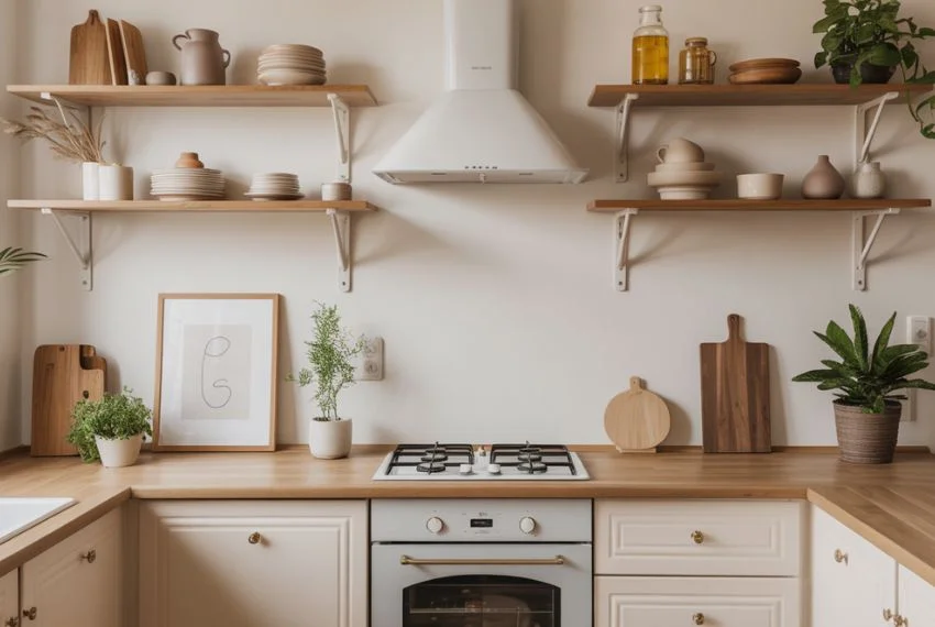 - Wooden countertops or shelves add character without overwhelming the space.